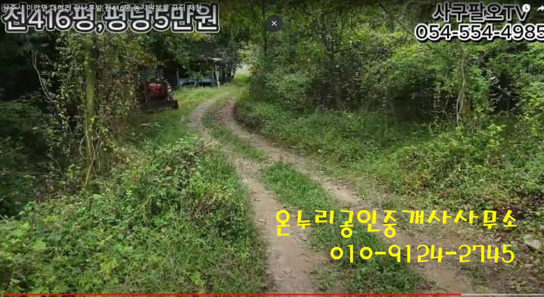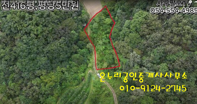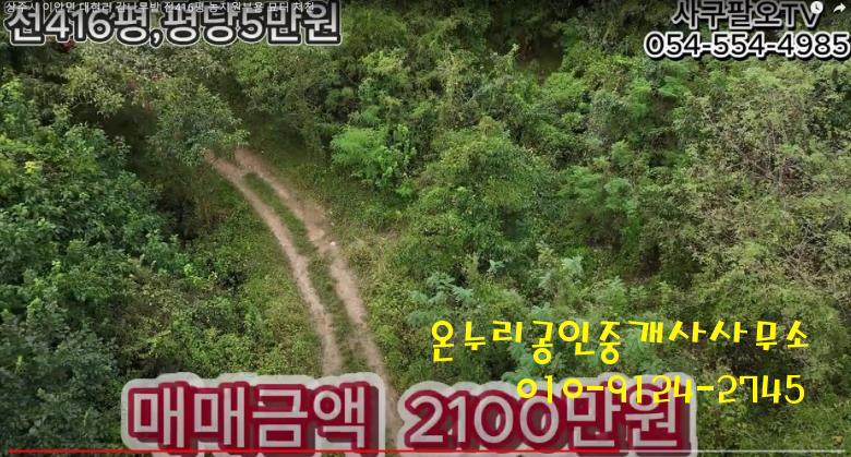 ■ 상주시 이안면 대현리 1375㎡ 전416평 농림지역 평당5만원 매매금액 2100만원